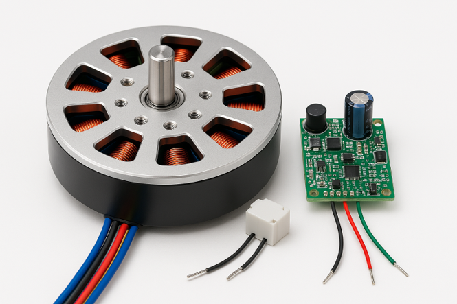 外轉式轉子直流無刷馬達(Outer Rotor BLDC)將永磁轉子設於馬達外殼,定子位於中心,具備結構緊湊、轉動穩定、噪音低等優勢。由於轉子本身即為旋轉外殼,可直接驅動風扇葉片或轉盤,簡化傳動結構並節省空間。此設計同時提高慣性質量與散熱效率,特別適合長時間連續運轉與靜音需求高的設備。